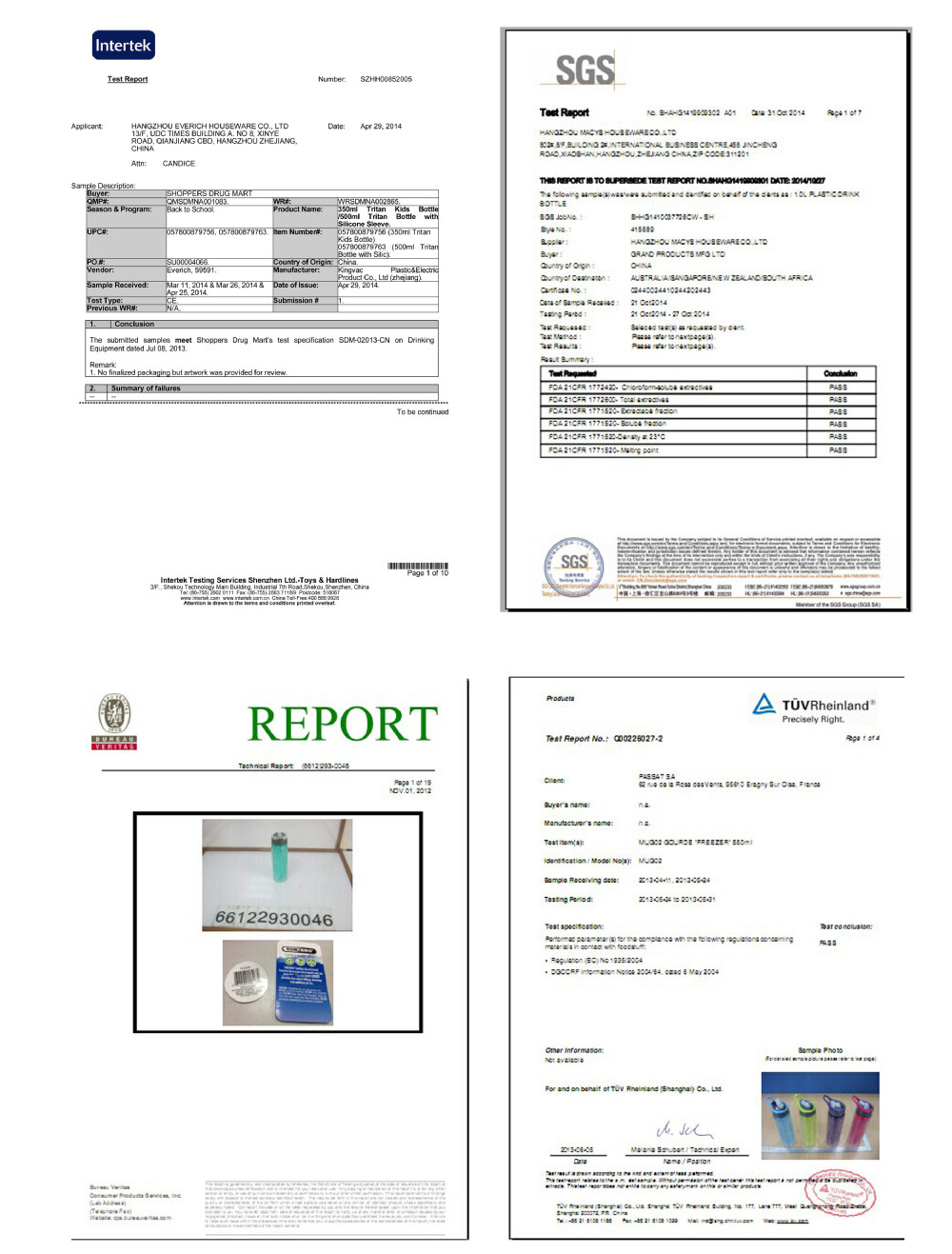 Certificats: FDA, LFGB, Prop 65, BPA gratuïts